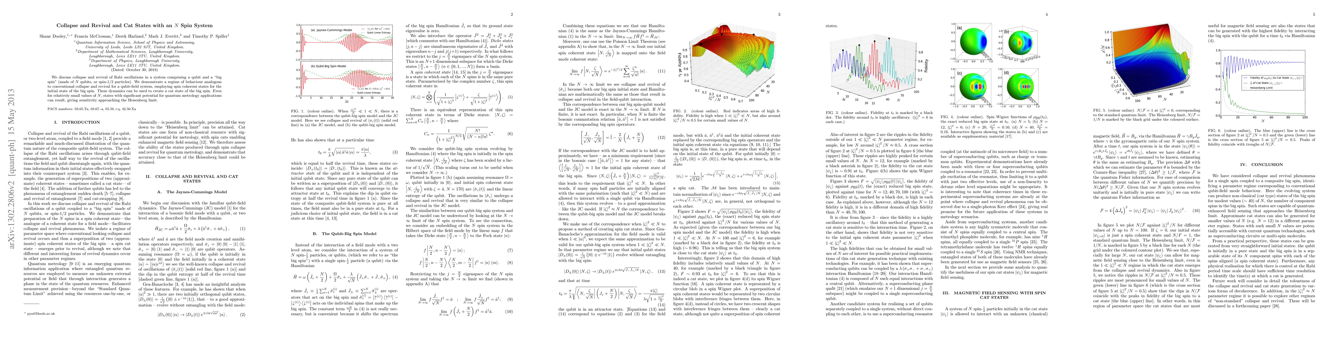 This paper explores the collapse and revival phenomena in a system combining a qubit and a "big spin" made up of N qubits, demonstrating dynamics analogous to qubit-field systems. The study utilizes spin coherent states to generate "Schrodinger cat" states, achieving quantum metrology sensitivity close to the Heisenberg limit.