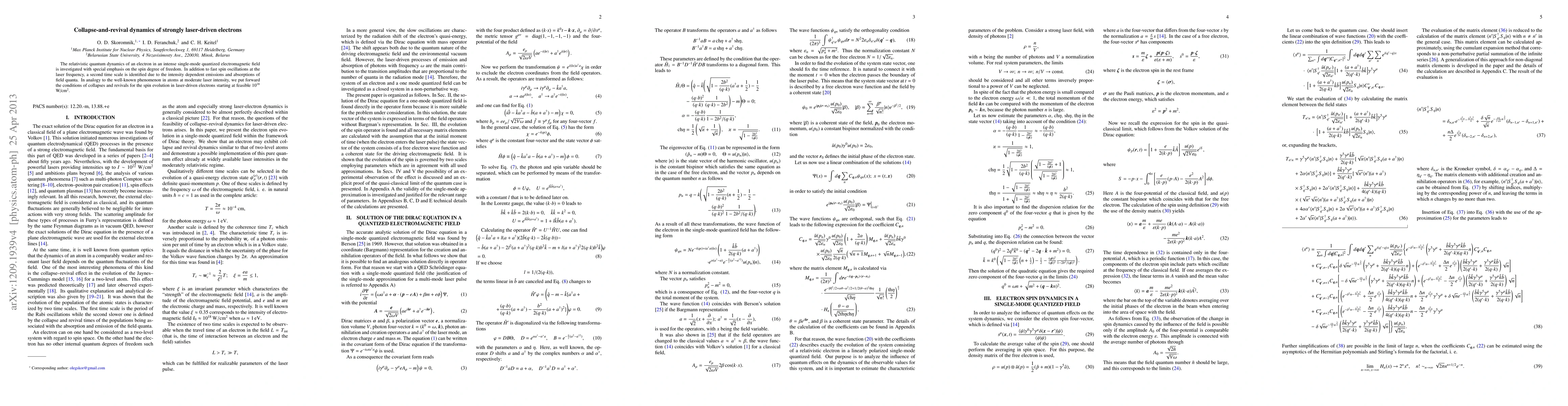 Researchers study how electrons in intense laser fields exhibit spin oscillations at two time scales, including a second scale due to field quantum emissions and absorptions. They identify conditions for 'collapse' and 'revival' of the electron's spin evolution at high laser intensities.