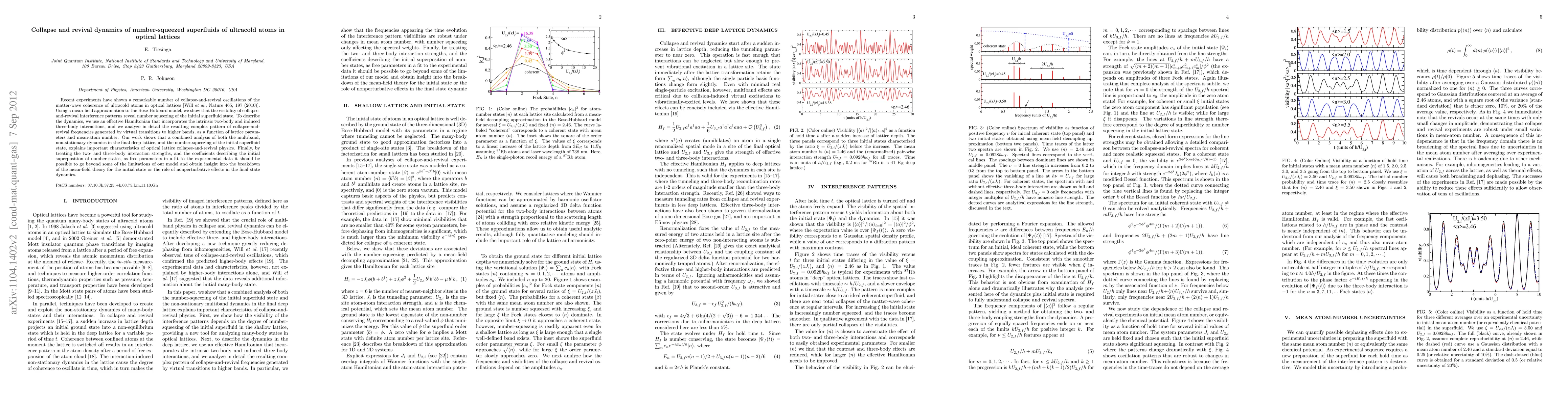 This paper investigates the dynamics of collapse-and-revival oscillations in superfluids of ultracold atoms within optical lattices, revealing number squeezing in the initial state through visibility of interference patterns. The study uses a mean-field approximation and an effective Hamiltonian to analyze the complex dynamics influenced by two-body and three-body interactions.