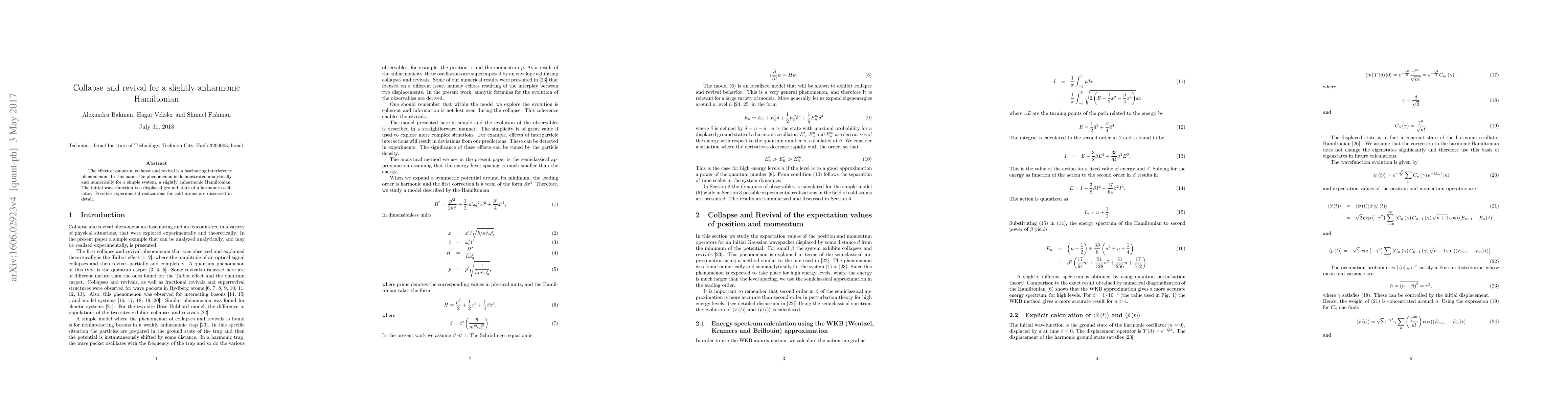 This paper analytically and numerically investigates quantum collapse and revival in a slightly anharmonic Hamiltonian, using a displaced ground state wave-function. It also explores potential experimental implementations with cold atoms.