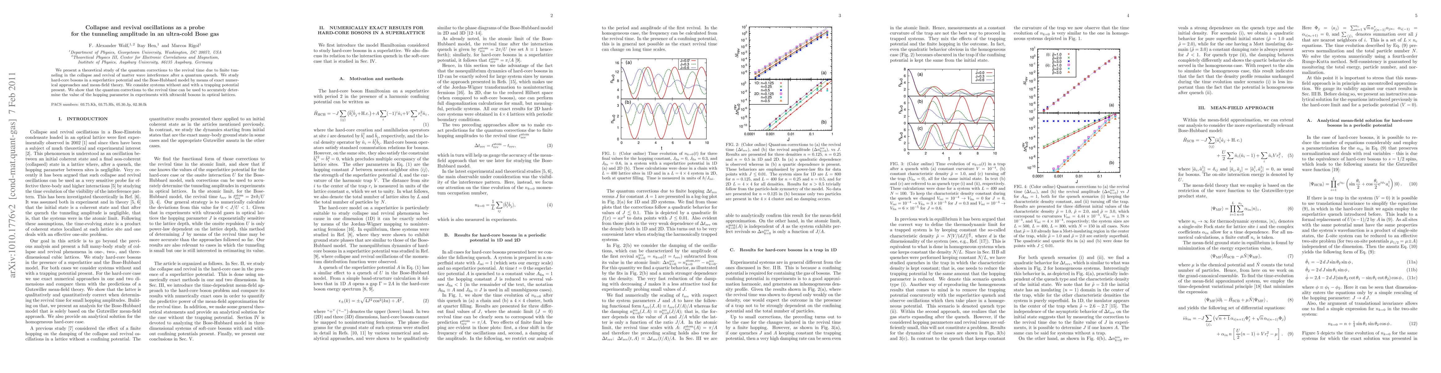 This paper investigates quantum corrections to the revival time in ultra-cold Bose gases due to finite tunneling after a quantum quench, using hard-core bosons in superlattice potentials and the Bose-Hubbard model. It demonstrates that these corrections can precisely determine the hopping parameter in optical lattice experiments.