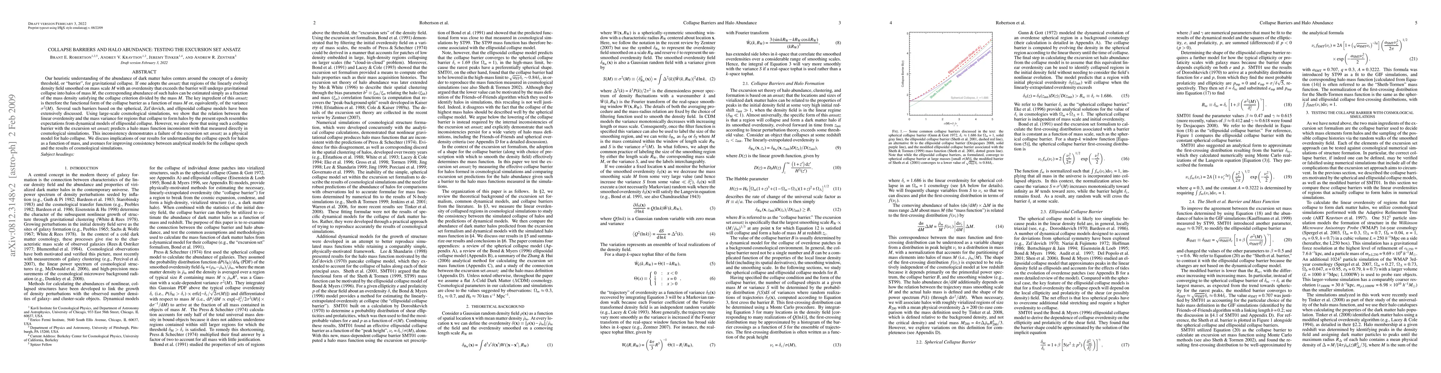 This paper examines the relationship between the excursion set ansatz and the collapse barrier for predicting the abundance of dark matter halos, finding that while ellipsoidal collapse models align well with observed collapse thresholds, the excursion set ansatz fails to accurately predict the halo mass function derived from simulations. The study highlights the need for improved analytical models to better match simulation results.