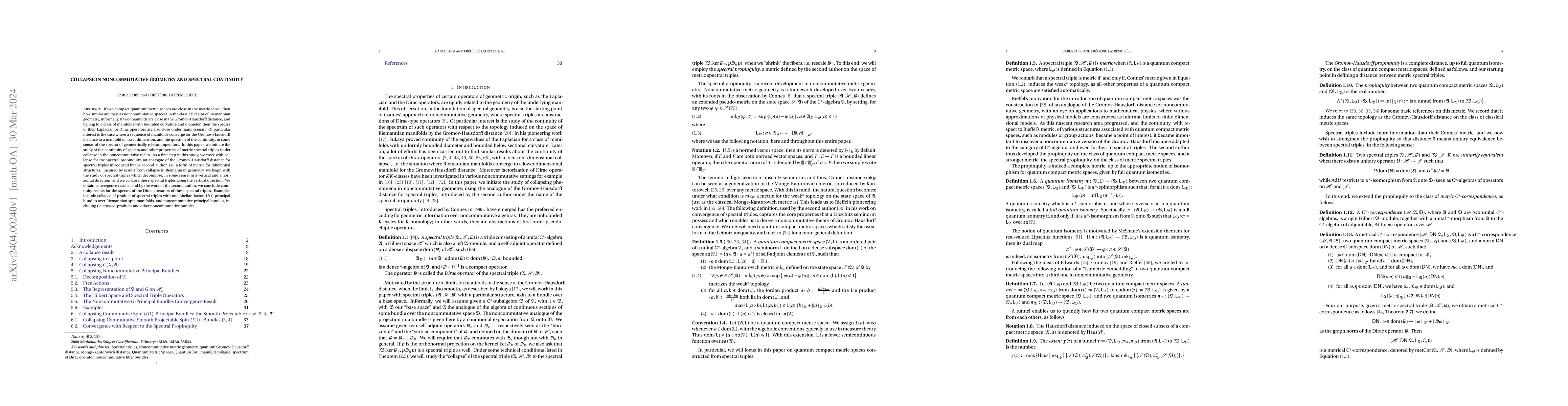 This paper investigates the continuity of spectra in noncommutative geometry as compact quantum metric spaces converge in the spectral propinquity metric. It demonstrates convergence results and spectral continuity for Dirac operators in various collapsed spectral triples, including $U(1)$ principal bundles and noncommutative bundles.