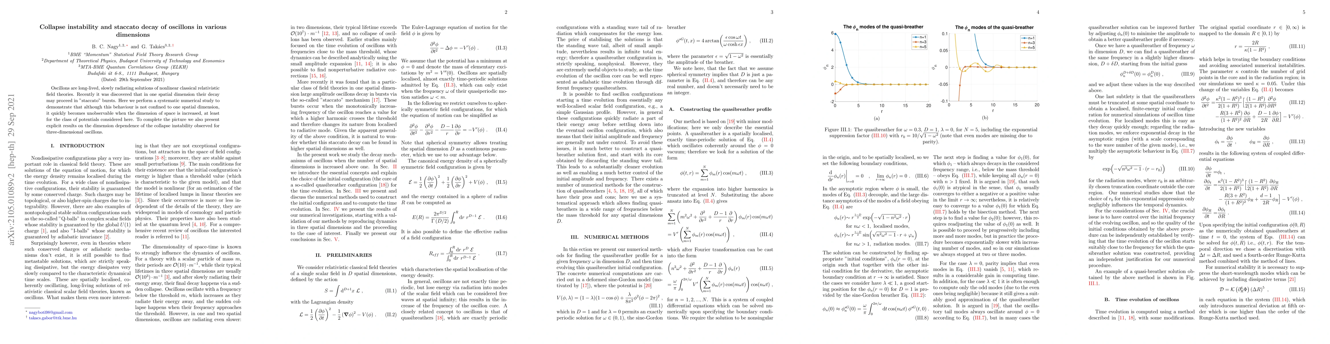 This work extends previous research on oscillons by systematically studying their behavior in multiple dimensions, revealing new insights into the collapse instabilities and staccato decay mechanisms.