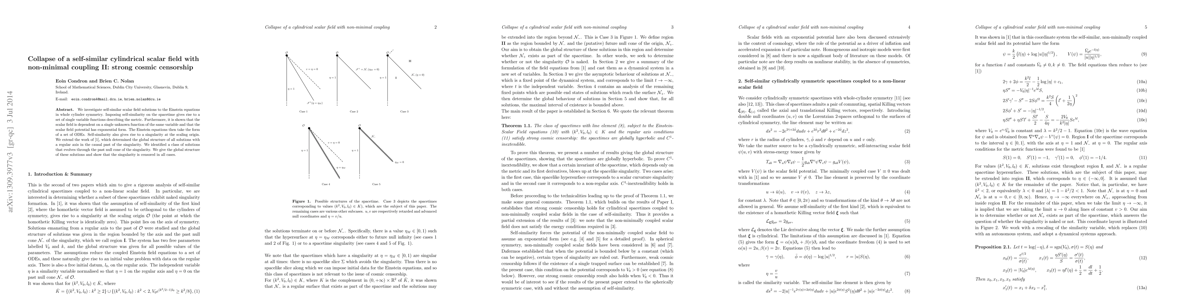 We investigate self-similar scalar field solutions to the Einstein equations in whole cylinder symmetry. Imposing self-similarity on the spacetime gives rise to a set of single variable functions describing the metric. Furthermore, it is shown that the scalar field is dependent on a single unknown function of the same variable and that the scalar field potential has exponential form. The Einstein equations then take the form of a set of ODEs. Self-similarity also gives rise to a singularity at the scaling origin. We extend the work of [1], which determined the global structure of all solutions in the causal past of the singularity. We identified a class of solutions that evolves through the past null cone of the singularity. We give the global structure of these solutions and show that the singularity is censored in all cases.