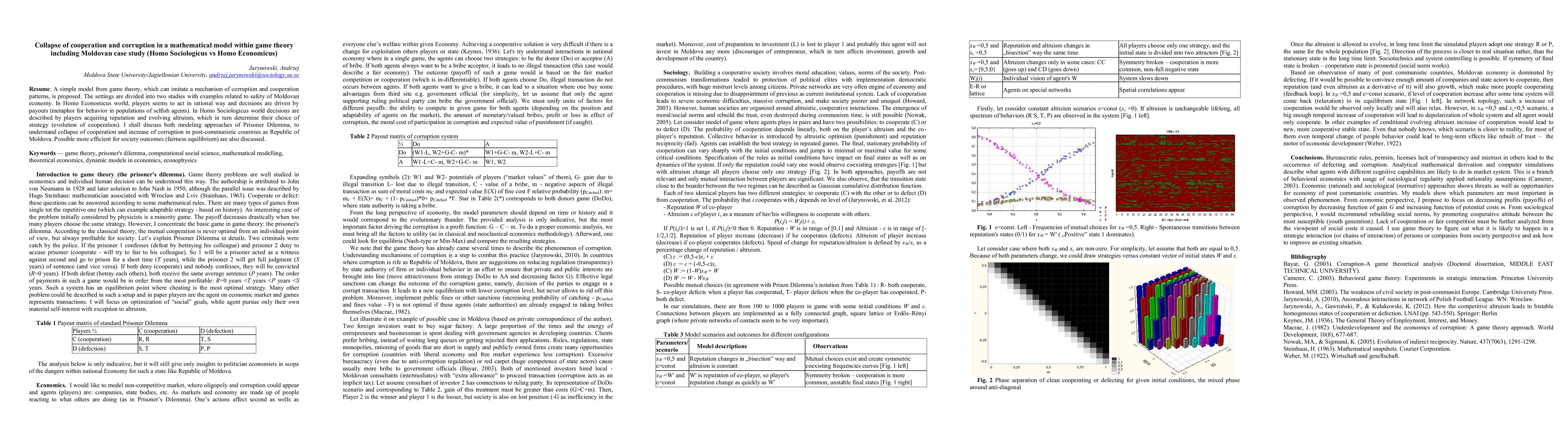 This paper proposes a game theory model to explore the dynamics of corruption and cooperation, contrasting Homo Economicus's rational self-interest with Homo Sociologicus's reputation-driven altruism, using Moldova as a case study. It examines the collapse of cooperation and rise in corruption in postcommunistic contexts, and discusses potential societal outcomes like fairness equilibrium.