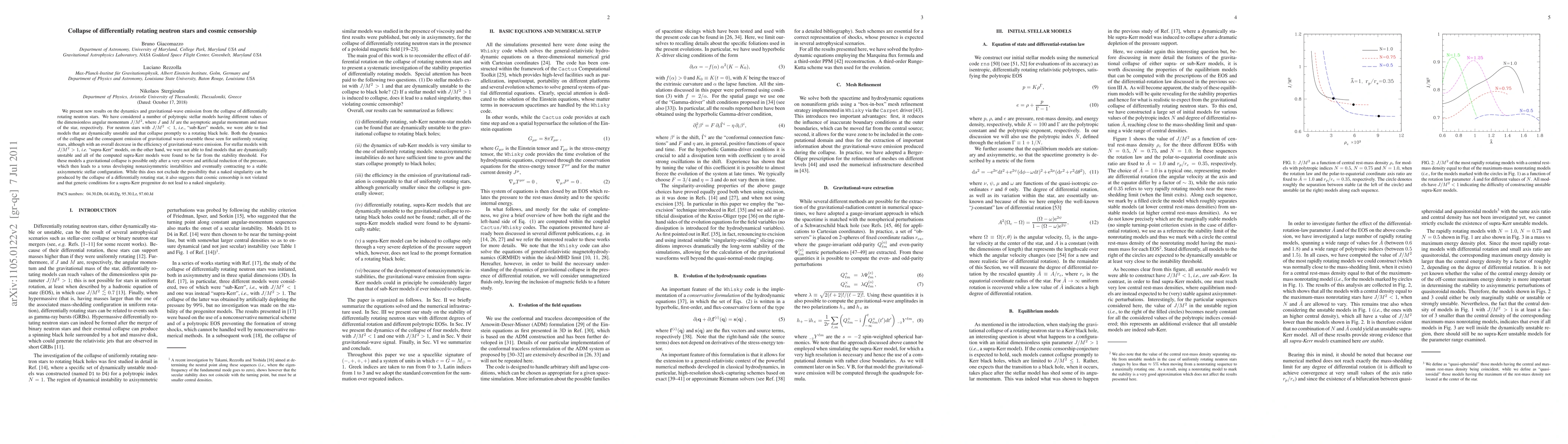 This paper investigates the dynamics and gravitational-wave emission during the collapse of differentially rotating neutron stars, finding that sub-Kerr models collapse to black holes while supra-Kerr models require extreme conditions to collapse, suggesting cosmic censorship is upheld.