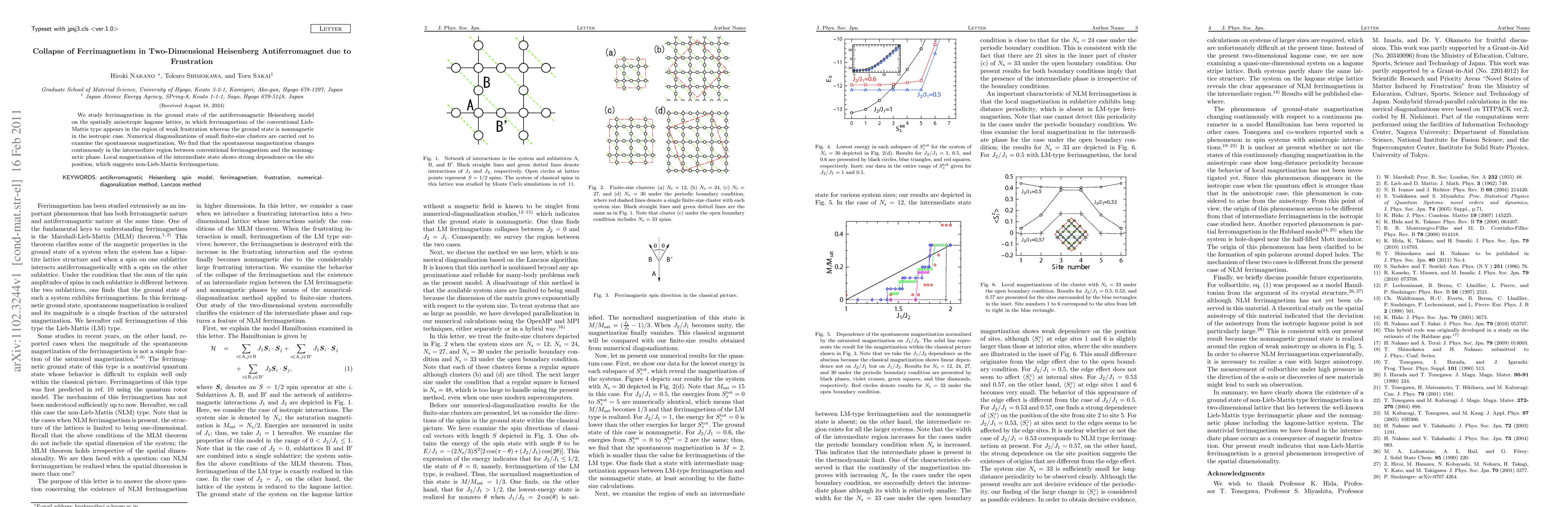 This study investigates the collapse of ferrimagnetism in a two-dimensional Heisenberg antiferromagnet on a kagome lattice under frustration. Numerical diagonalizations reveal a continuous transition in spontaneous magnetization between conventional ferrimagnetism and a nonmagnetic phase, indicating a non-Lieb-Mattis ferrimagnetic state with site-dependent local magnetization.