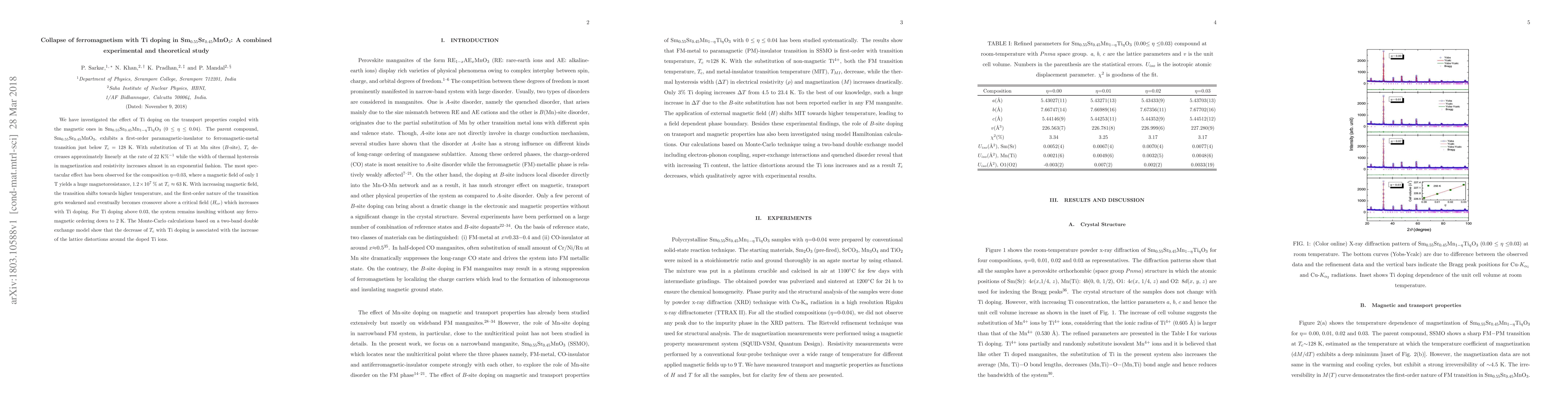 This study investigates the impact of Ti doping on the magnetic and transport properties of Sm$_{0.55}$Sr$_{0.45}$MnO$_3$, revealing a significant decrease in the critical temperature $T_{\rm c}$ and a dramatic increase in magnetoresistance, while the system loses ferromagnetism above a certain doping level. Theoretical calculations link the decrease in $T_{\rm c}$ to increased lattice distortions due to Ti doping.