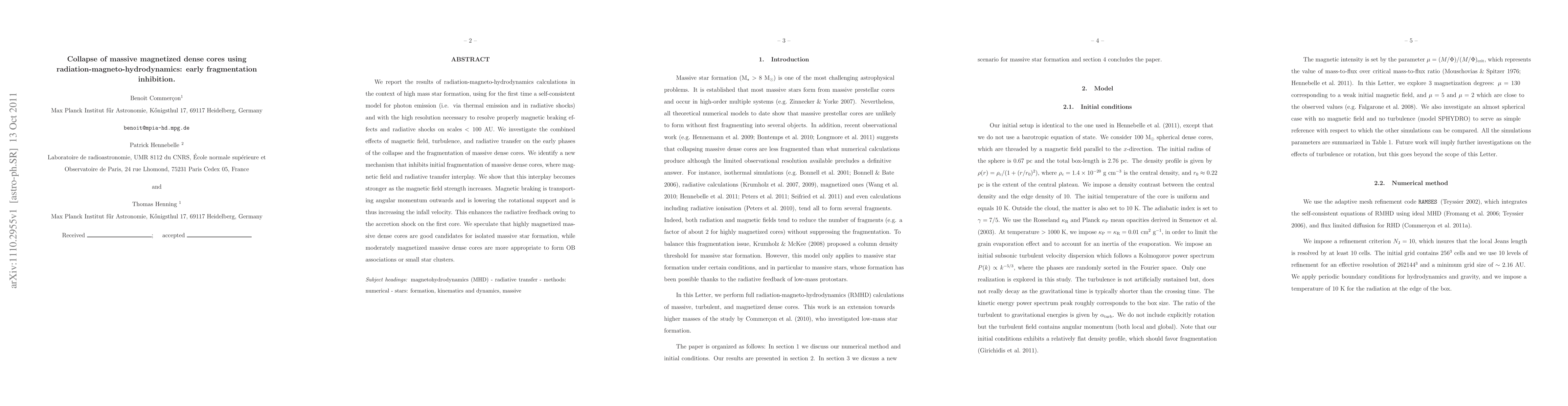 This study uses advanced radiation-magneto-hydrodynamics simulations to explore the early fragmentation of massive dense cores, identifying a mechanism where magnetic fields and radiative transfer inhibit initial fragmentation. Highly magnetized cores may lead to isolated massive star formation, while moderately magnetized cores could form OB associations or small star clusters.