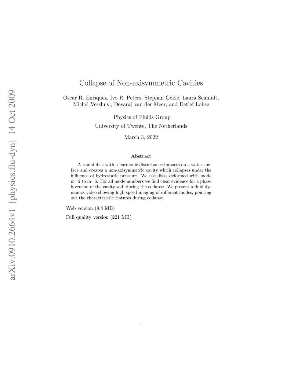 A round disk with a harmonic disturbance impacts on a water surface and creates a non-axisymmetric cavity which collapses under the influence of hydrostatic pressure. We use disks deformed with mode m=2 to m=6. For all mode numbers we find clear evidence for a phase inversion of the cavity wall during the collapse. We present a fluid dynamics video showing high speed imaging of different modes, pointing out the characteristic features during collapse.
