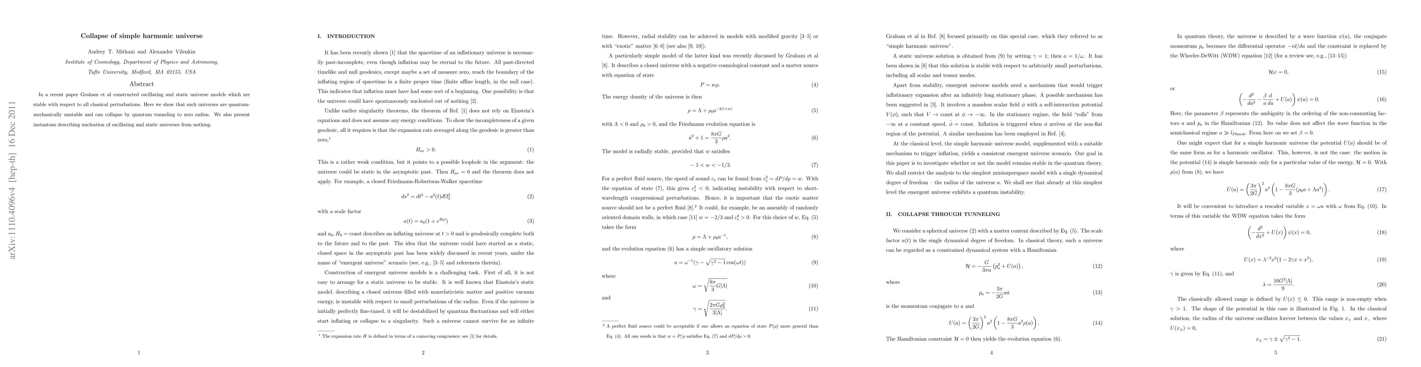 Researchers show that simple harmonic universe models can collapse through quantum tunneling to zero radius, challenging their stability.