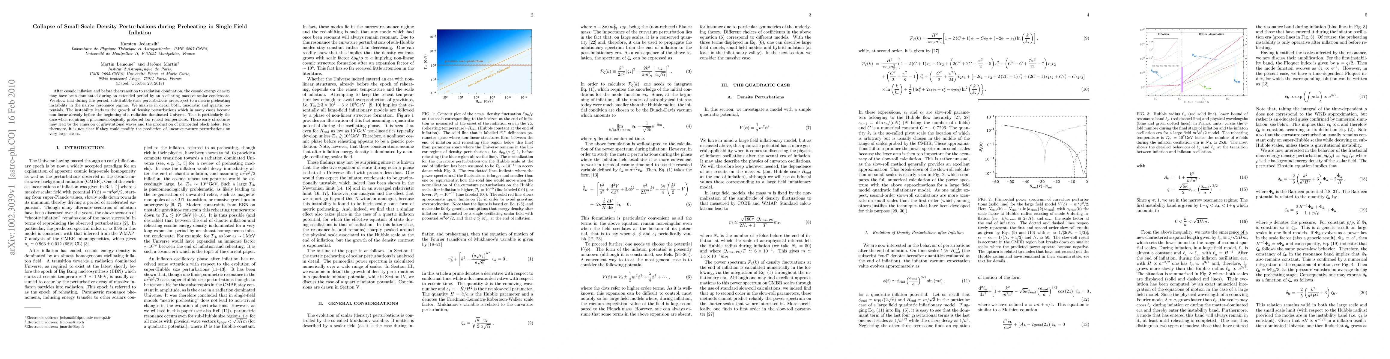 After cosmic inflation and before the transition to radiation domination, the cosmic energy density may have been dominated during an extended period by an oscillating massive scalar condensate. We show that during this period, sub-Hubble scale perturbations are subject to a metric preheating instability in the narrow resonance regime. We analyze in detail both, quadratic and quartic potentials. The instability leads to the growth of density perturbations which in many cases become non-linear already before the beginning of a radiation dominated Universe. This is particularly the case when requiring a phenomenologically preferred low reheat temperature. These early structures may lead to the emission of gravitational waves and the production of primordial black holes. Furthermore, it is not clear if they could modify the prediction of linear curvature perturbations on very large scales.