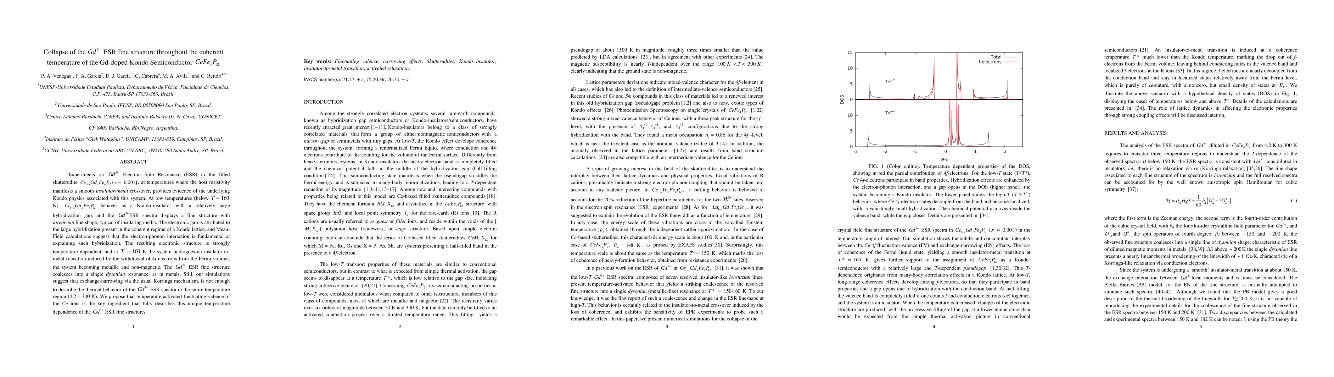 Research on Gd-doped Kondo Semiconductor $CeFe_{4}P_{12}$ reveals that the material exhibits a unique insulator-metal transition at around 160K, causing the ESR fine structure to change from lorentzian to dysonian resonance.