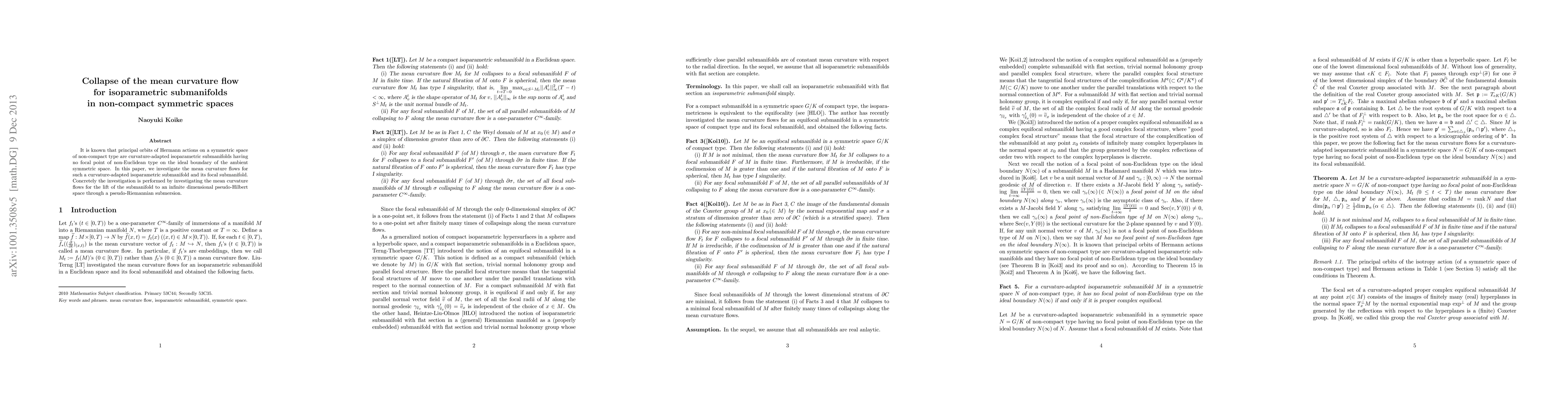 This paper examines the mean curvature flow for curvature-adapted isoparametric submanifolds in non-compact symmetric spaces, focusing on their behavior and collapse mechanisms. The study employs a pseudo-Riemannian submersion to lift the submanifold into an infinite-dimensional pseudo-Hilbert space for detailed analysis.