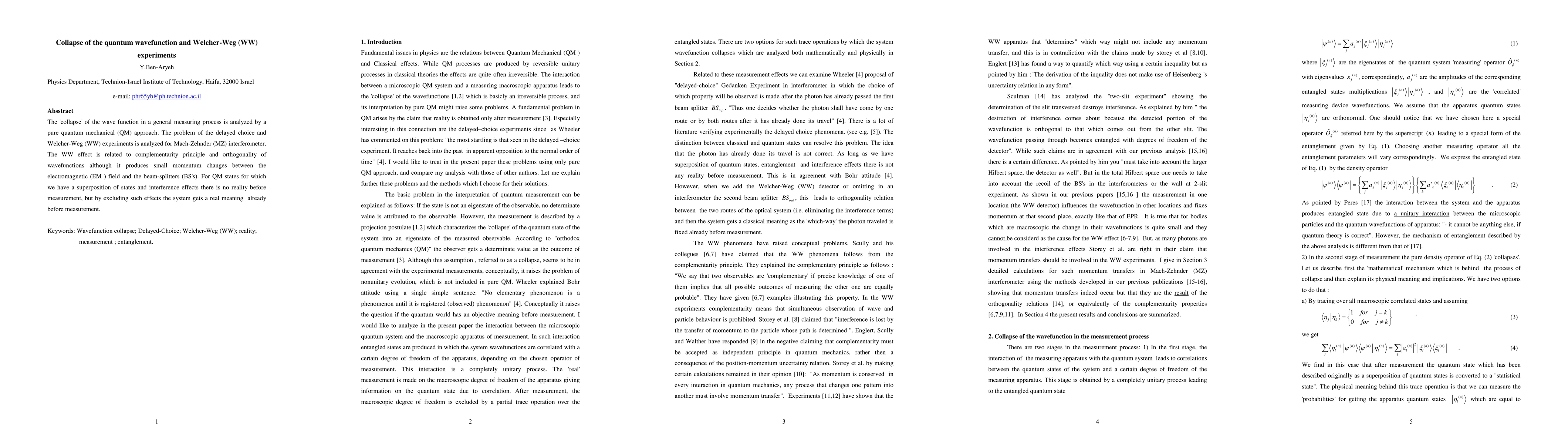 This paper analyzes the quantum wavefunction's collapse in a pure quantum mechanical framework, focusing on delayed choice and Welcher-Weg experiments in a Mach-Zehnder interferometer. It concludes that the WW effect, linked to the complementarity principle, implies no reality before measurement, but excluding interference effects grants pre-measurement reality.