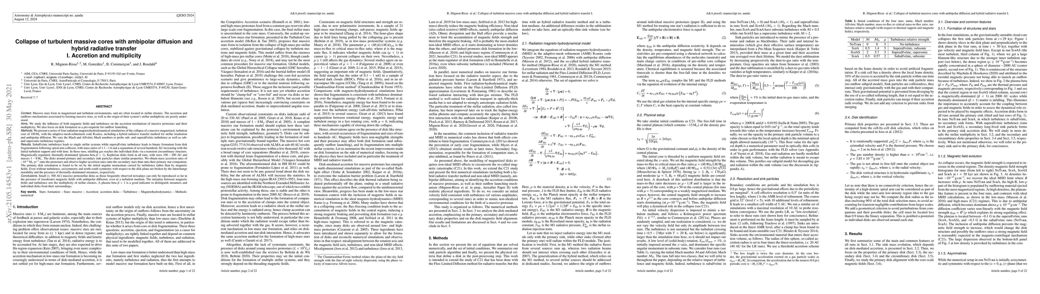 This study explores the impact of magnetic fields and turbulence on the accretion processes of massive protostars and their multiplicity using advanced MHD simulations. The results indicate that subalfvenic turbulence favors single systems, while superalfvenic turbulence leads to binary formation via disk fragmentation.