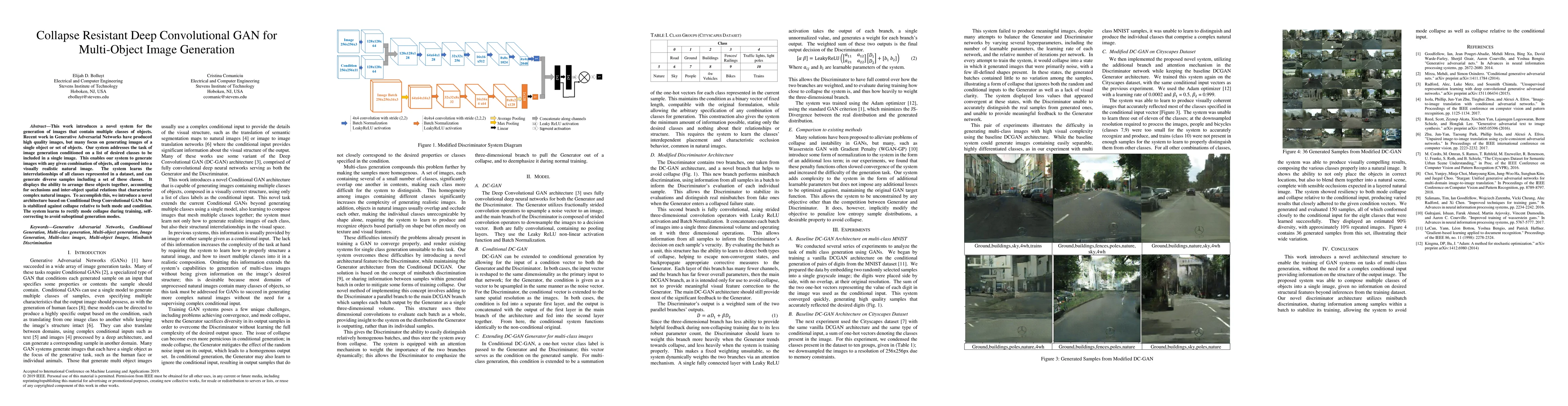 This work introduces a novel system for the generation of images that contain multiple classes of objects. Recent work in Generative Adversarial Networks have produced high quality images, but many focus on generating images of a single object or set of objects. Our system addresses the task of image generation conditioned on a list of desired classes to be included in a single image. This enables our system to generate images with any given combination of objects, all composed into a visually realistic natural image. The system learns the interrelationships of all classes represented in a dataset, and can generate diverse samples including a set of these classes. It displays the ability to arrange these objects together, accounting for occlusions and inter-object spatial relations that characterize complex natural images. To accomplish this, we introduce a novel architecture based on Conditional Deep Convolutional GANs that is stabilized against collapse relative to both mode and condition. The system learns to rectify mode collapse during training, self-correcting to avoid suboptimal generation modes.