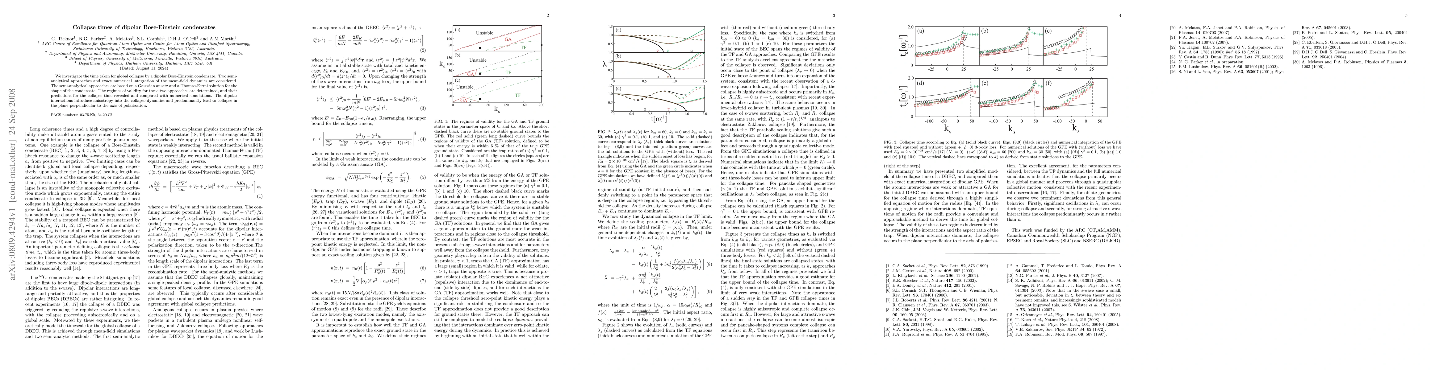 This work provides a new theoretical framework for understanding DBEC collapse, which differs from existing research in its use of a high-simplified equation of motion