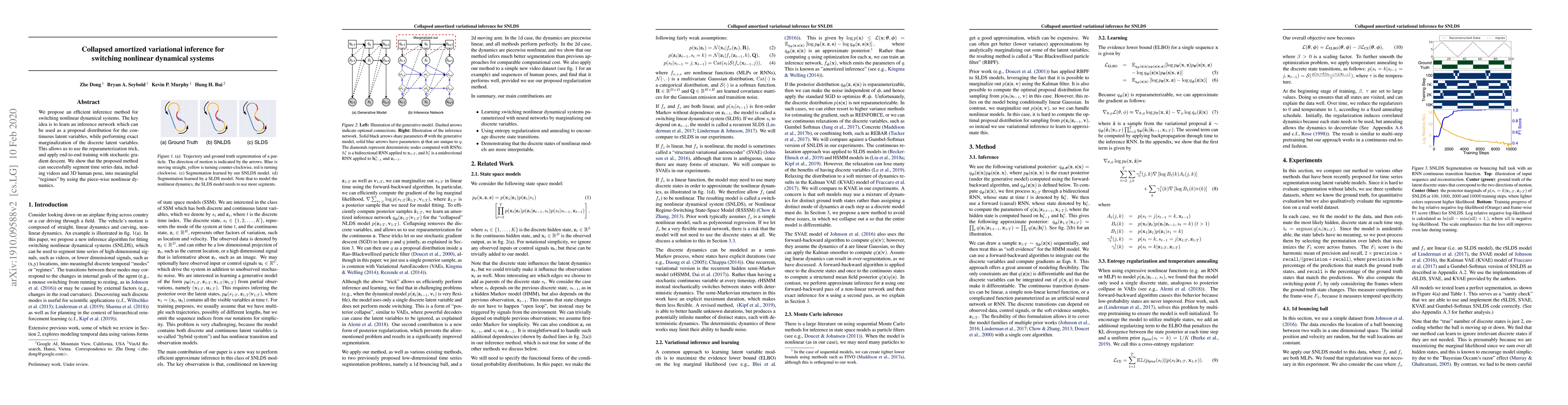 This paper introduces a collapsed amortized variational inference method for switching nonlinear dynamical systems, utilizing an inference network to propose distributions for continuous latent variables and exact marginalization for discrete latent variables, enabling effective end-to-end training and successful segmentation of time series data into meaningful regimes.