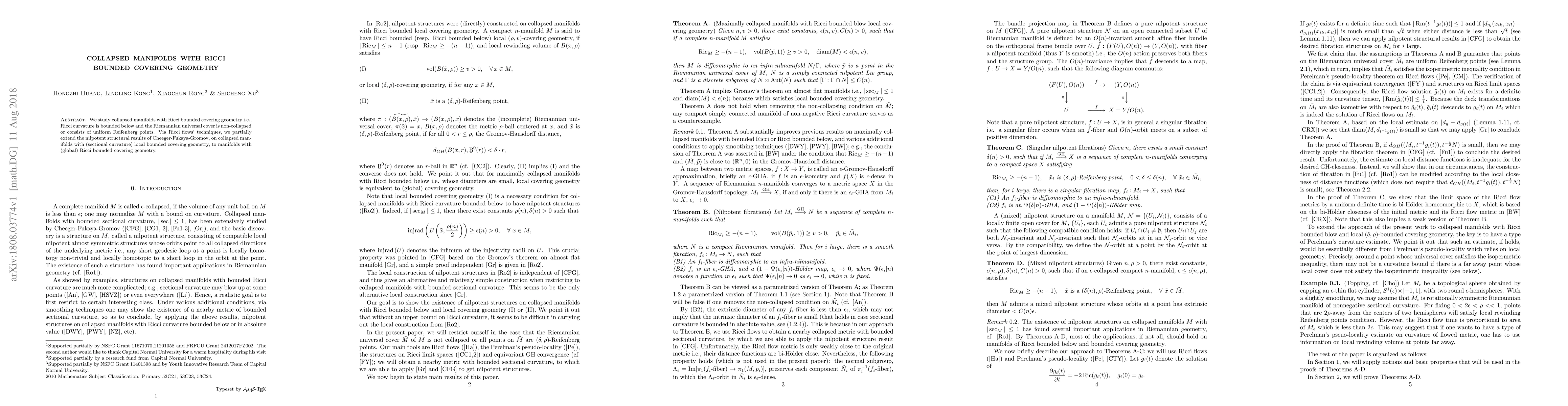 This paper explores collapsed manifolds with Ricci curvature bounded below and examines their universal cover's geometry, extending previous nilpotent structural results from sectional curvature to global Ricci curvature using Ricci flow techniques.