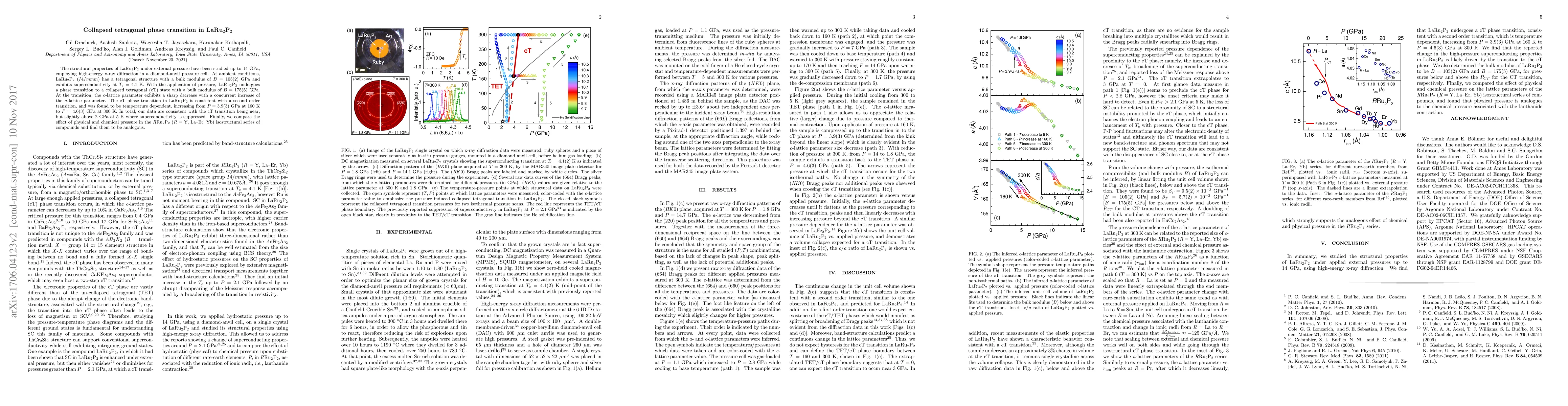 This study reveals that LaRu$_2$P$_2$ undergoes a pressure-induced collapsed tetragonal phase transition, with a bulk modulus increase and distinct lattice parameter changes, indicating a second-order transition. The transition pressure varies with temperature, suggesting its dependency on both pressure and temperature.