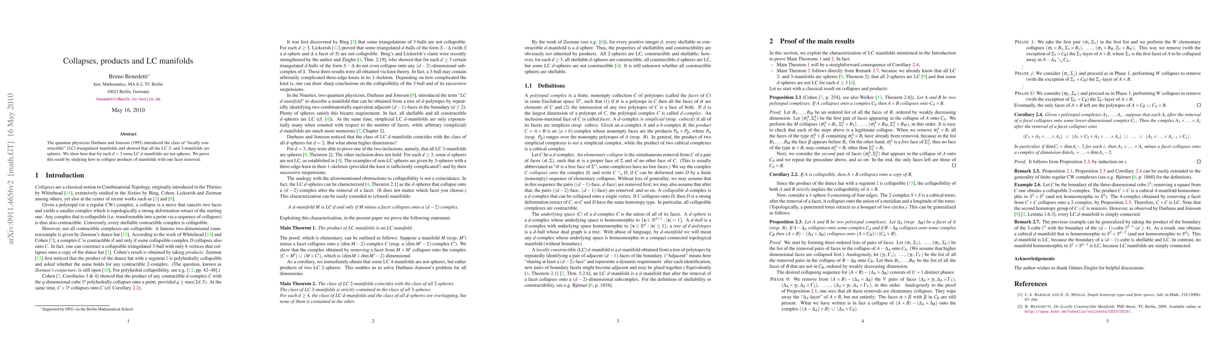 This research paper shows that not all locally constructible d-manifolds with d>3 are spheres, and it provides a method to collapse products of manifolds with one facet removed.