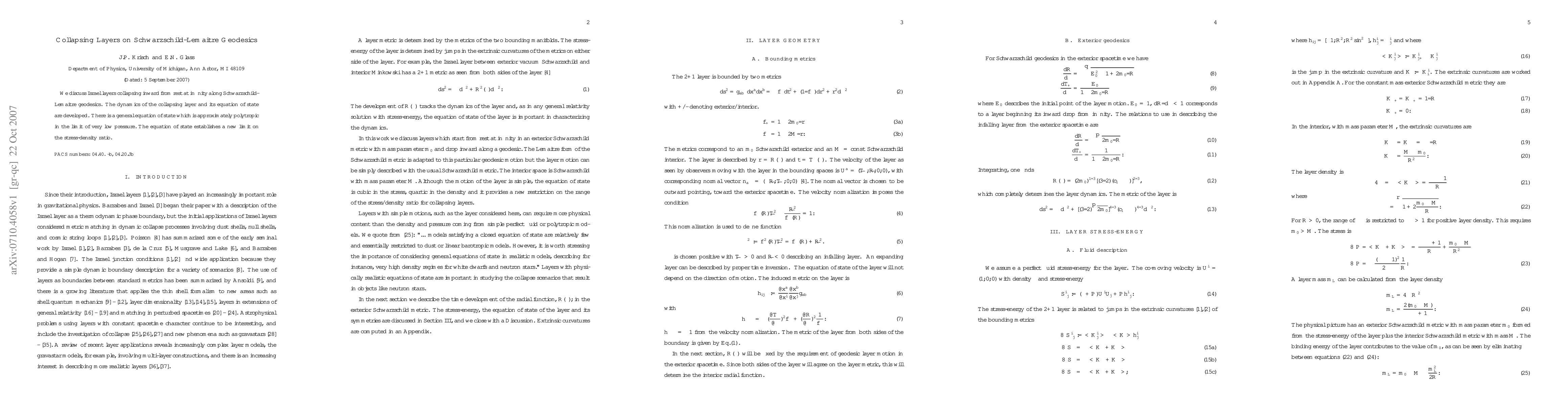 Researchers studied how layers of matter collapse inward on geodesics near black holes, finding a general equation of state that sets a new limit on stress-density ratios in collapsing regions.