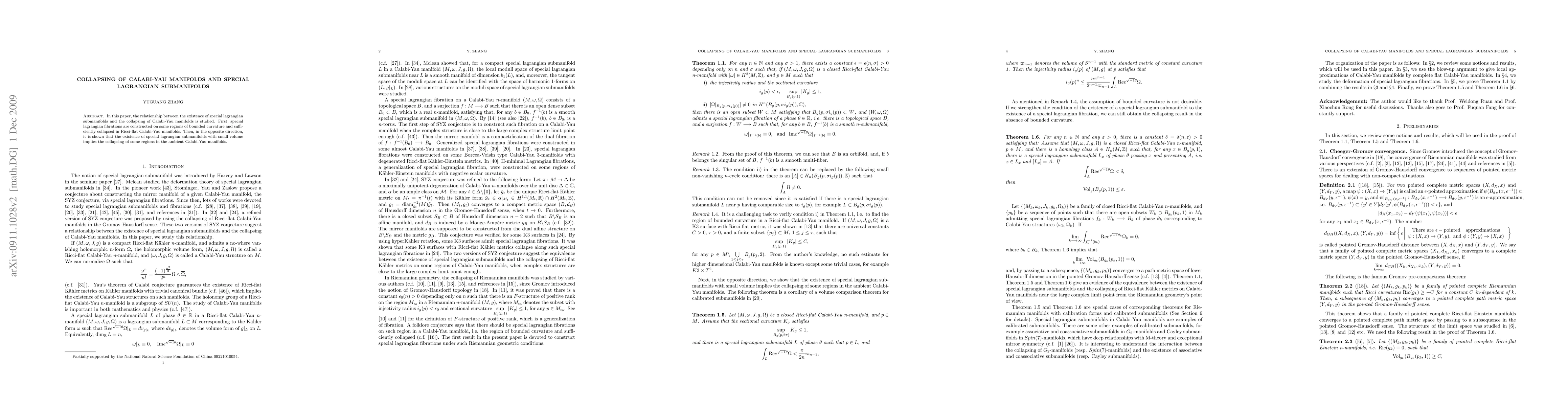 This paper investigates the link between the existence of special Lagrangian submanifolds and the collapsing of Calabi-Yau manifolds, demonstrating that the presence of such submanifolds with small volume can lead to the collapse of certain regions within the ambient manifold.