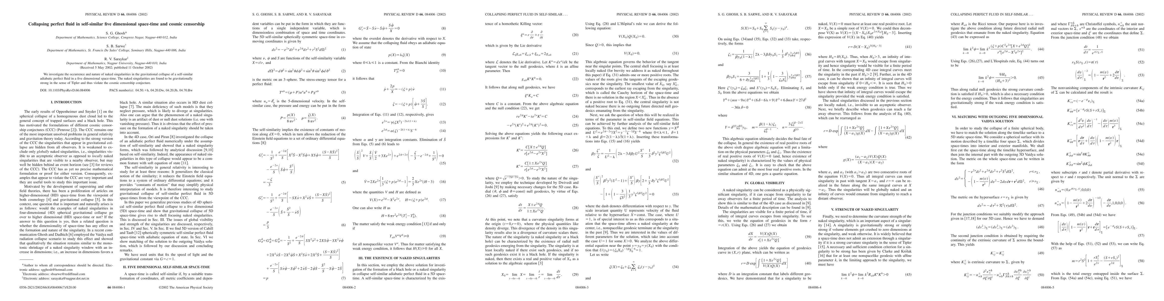 Summary: This paper explores the gravitational collapse of a self-similar perfect fluid in five-dimensional space-time, revealing the emergence of gravitationally strong naked singularities that violate the cosmic censorship conjecture.