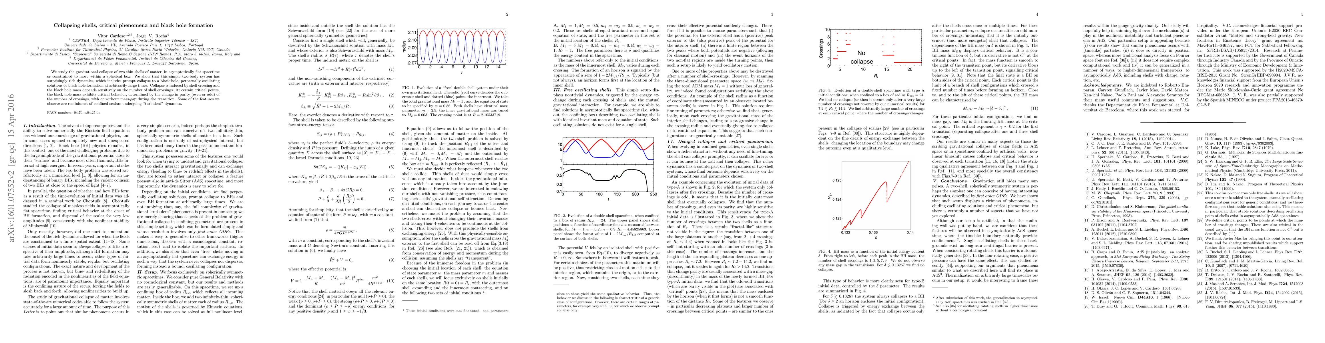Research shows that the gravitational collapse of two thin shells of matter can form black holes with critical behavior at certain points, exhibiting rich dynamics and similarities to turbulent scalars.