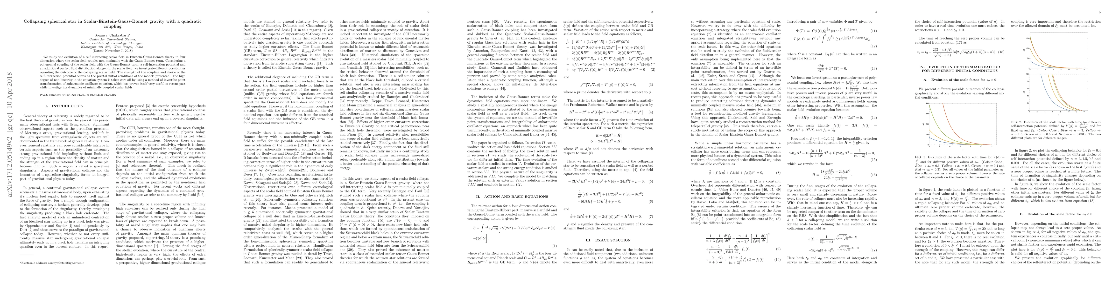 We study the evolution of a self interacting scalar field in Einstein-Gauss-Bonnet theory in four dimension where the scalar field couples non minimally with the Gauss-Bonnet term. Considering a polynomial coupling of the scalar field with the Gauss-Bonnet term, a self-interaction potential and an additional perfect fluid distribution alongwith the scalar field, we investigate different possibilities regarding the outcome of the collapsing scalar field. The strength of the coupling and choice of the self-interaction potential serves as the pivotal initial conditions of the models presented. The high degree of non-linearity in the equation system is taken care off by using a method of invertibe point transformation of anharmonic oscillator equation, which has proven itself very useful in recent past while investigating dynamics of minimally coupled scalar fields.