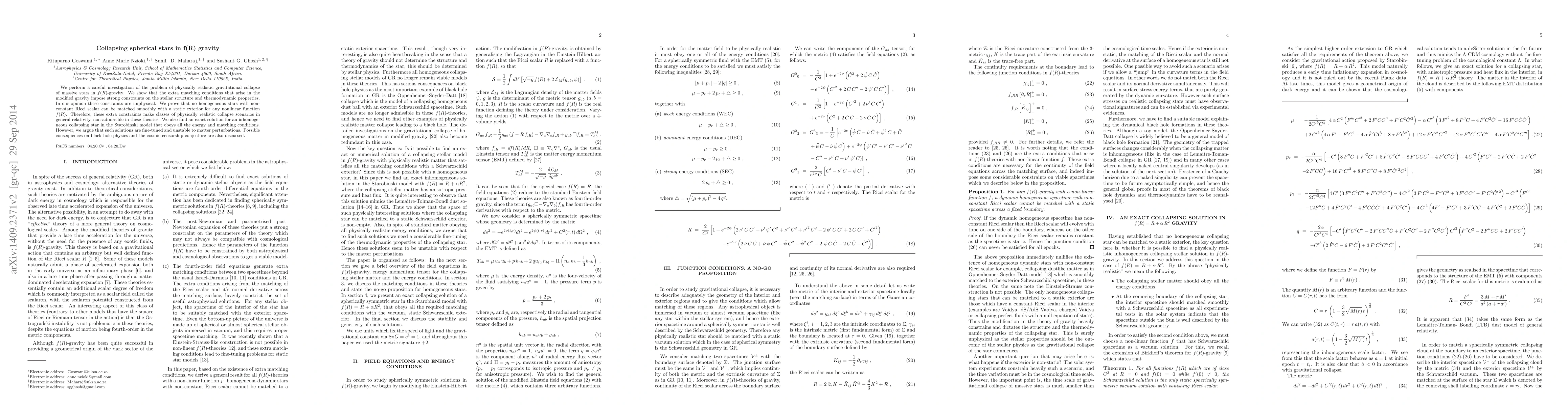 We perform a careful investigation of the problem of physically realistic gravitational collapse of massive stars in f(R)-gravity. We show that the extra matching conditions that arise in the modified gravity imposes strong constraints on the stellar structure and thermodynamic properties. In our opinion these constraints are unphysical. We prove that no homogeneous stars with non-constant Ricci scalar can be matched smoothly with a static exterior for any nonlinear function f(R). Therefore, these extra constraints make classes of physically realistic collapse scenarios in general relativity, non-admissible in these theories. We also find an exact solution for an inhomogeneous collapsing star in the Starobinski model that obeys all the energy and matching conditions. However, we argue that such solutions are fine-tuned and unstable to matter perturbations. Possible consequences on black hole physics and the cosmic censorship conjecture are also discussed.