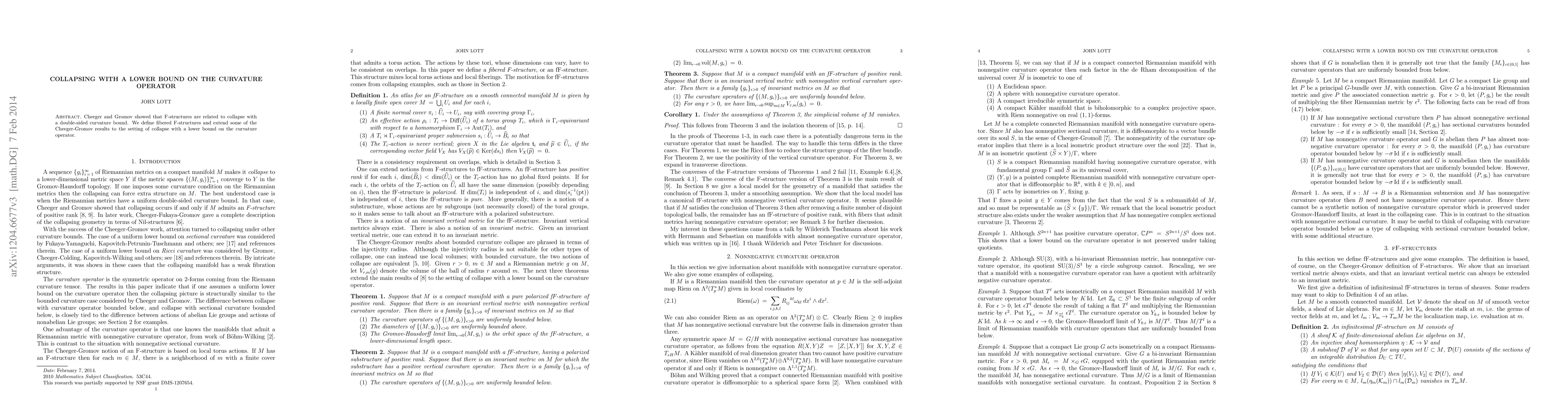 Summary: This paper extends Cheeger-Gromov results on F-structures to include fibered F-structures, focusing on the collapse of Riemannian manifolds under a lower bound on the curvature operator. The study provides new insights into the relationship between geometric structures and manifold collapse.