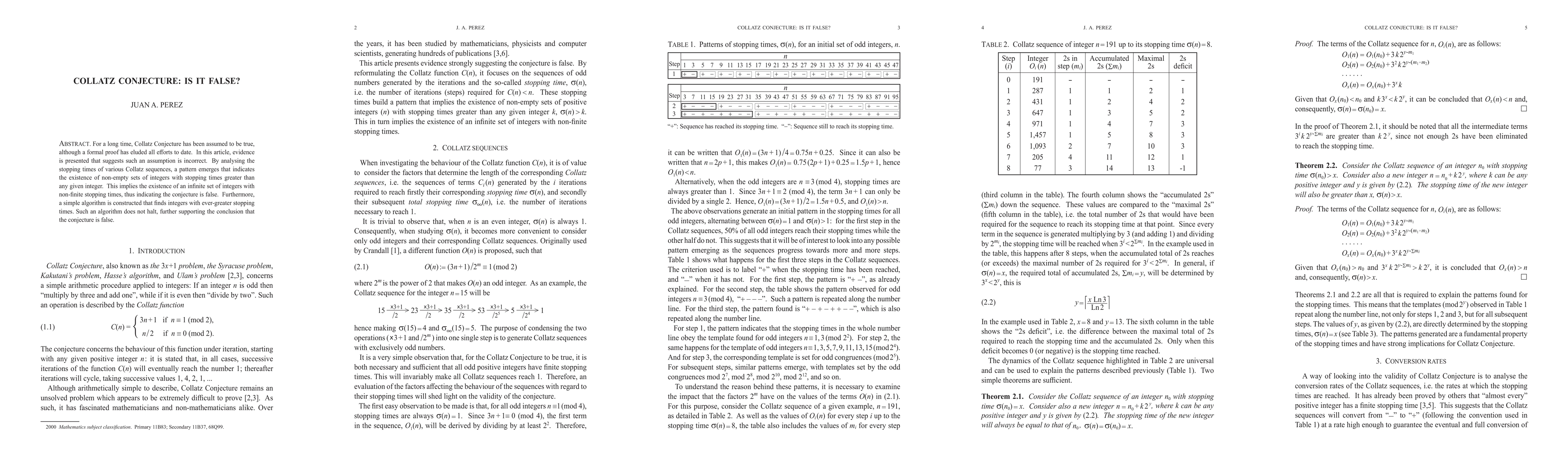 This paper presents evidence suggesting the Collatz Conjecture is false, revealing a pattern of non-empty sets of integers with infinite stopping times. An algorithm is also introduced that finds integers with ever-greater stopping times, confirming the conjecture's invalidity.