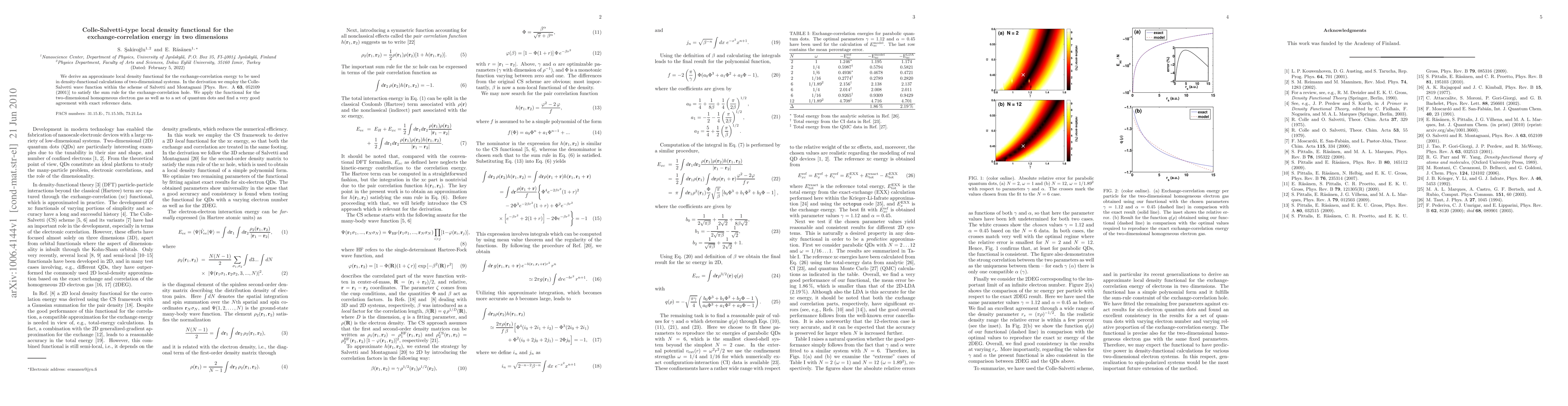 We derive an approximate local density functional for the exchange-correlation energy to be used in density-functional calculations of two-dimensional systems. In the derivation we employ the Colle-Salvetti wave function within the scheme of Salvetti and Montagnani [Phys. Rev. A 63, 052109 (2001)] to satisfy the sum rule for the exchange-correlation hole. We apply the functional for the two-dimensional homogeneous electron gas as well as to a set of quantum dots and find a very good agreement with exact reference data.