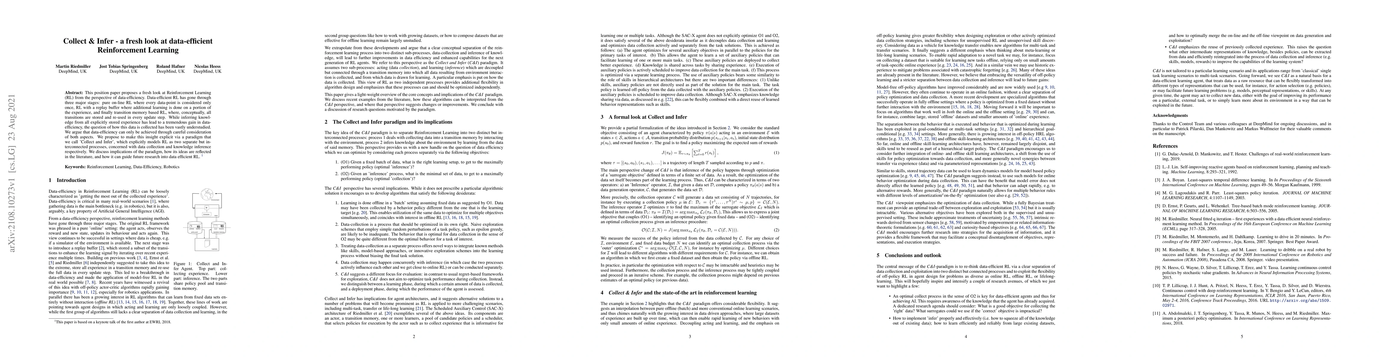 This position paper proposes a fresh look at Reinforcement Learning (RL) from the perspective of data-efficiency. Data-efficient RL has gone through three major stages: pure on-line RL where every data-point is considered only once, RL with a replay buffer where additional learning is done on a portion of the experience, and finally transition memory based RL, where, conceptually, all transitions are stored and re-used in every update step. While inferring knowledge from all explicitly stored experience has lead to a tremendous gain in data-efficiency, the question of how this data is collected has been vastly understudied. We argue that data-efficiency can only be achieved through careful consideration of both aspects. We propose to make this insight explicit via a paradigm that we call 'Collect and Infer', which explicitly models RL as two separate but interconnected processes, concerned with data collection and knowledge inference respectively. We discuss implications of the paradigm, how its ideas are reflected in the literature, and how it can guide future research into data efficient RL.