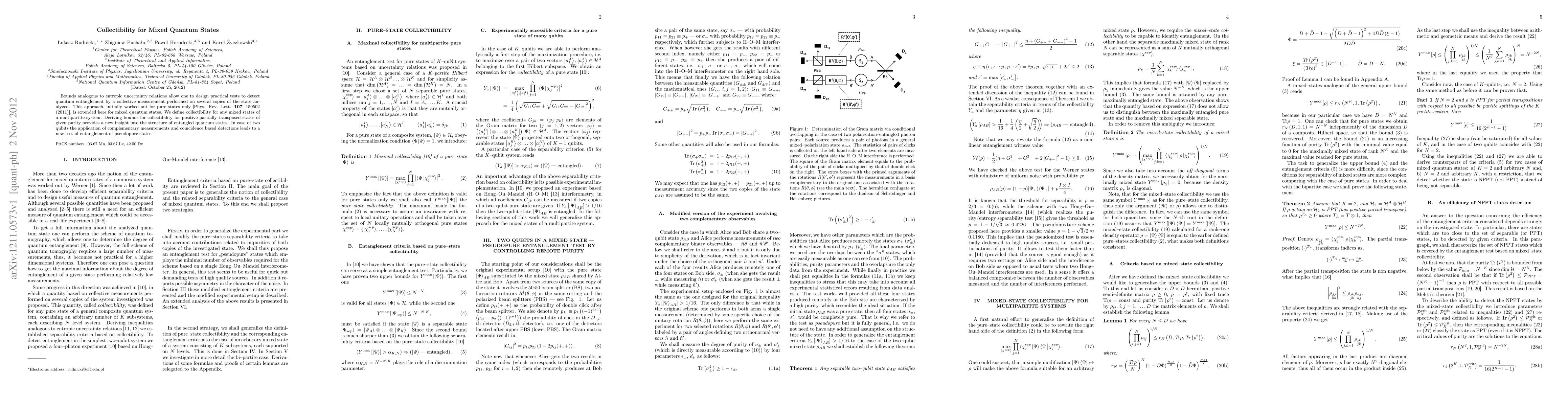 This paper extends the concept of collectibility, initially developed for pure quantum states, to mixed states, providing new bounds for detecting entanglement through collective measurements. The study offers insights into the structure of entangled states and introduces a novel test for entanglement in pseudopure states of two qubits.
