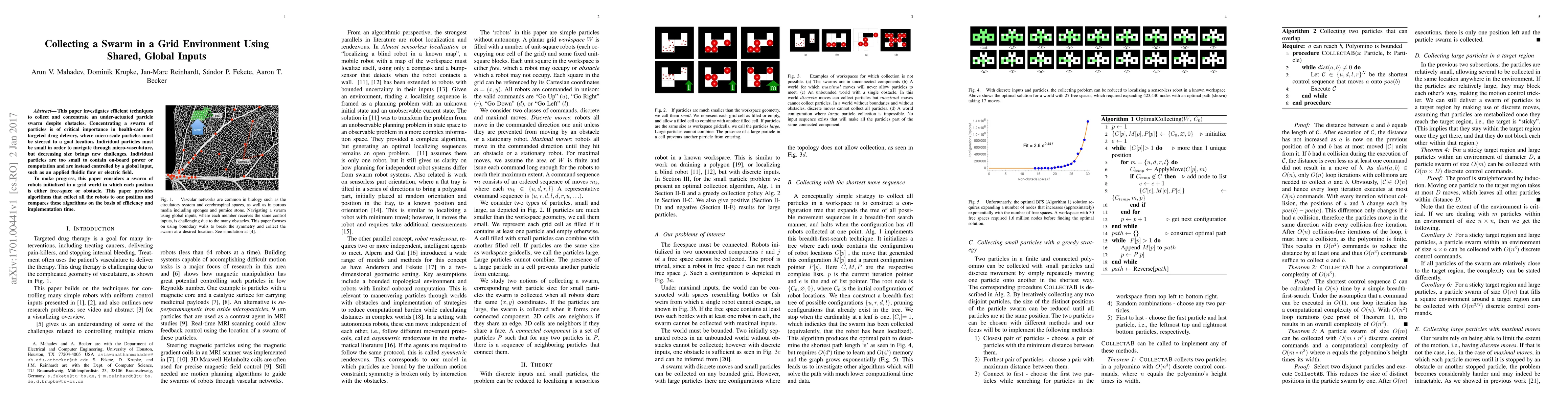 This paper investigates efficient techniques to collect and concentrate an under-actuated particle swarm despite obstacles. Concentrating a swarm of particles is of critical importance in health-care for targeted drug delivery, where micro-scale particles must be steered to a goal location. Individual particles must be small in order to navigate through micro-vasculature, but decreasing size brings new challenges. Individual particles are too small to contain on-board power or computation and are instead controlled by a global input, such as an applied fluidic flow or electric field. To make progress, this paper considers a swarm of robots initialized in a grid world in which each position is either free-space or obstacle. This paper provides algorithms that collect all the robots to one position and compares these algorithms on the basis of efficiency and implementation time.