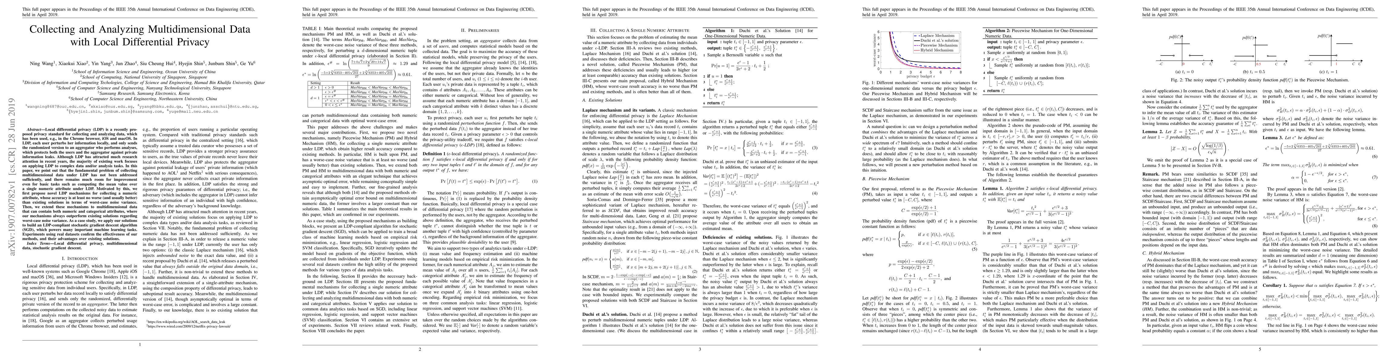 This paper proposes novel local differential privacy (LDP) mechanisms for collecting and analyzing multidimensional data, improving accuracy over existing solutions, particularly for basic tasks like computing mean values. The methods are extended to handle both numeric and categorical attributes, and are applied to an LDP-compliant stochastic gradient descent algorithm, demonstrating superior performance in experiments.