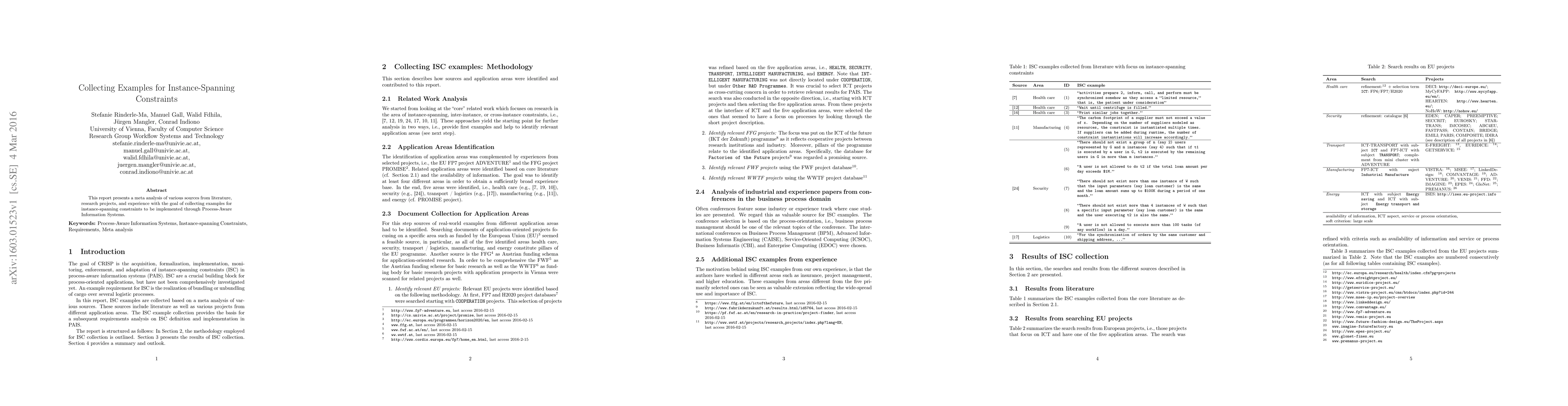 This report presents a meta analysis of various sources from literature, research projects, and experience with the goal of collecting examples for instance-spanning constraints to be implemented through Process-Aware Information Systems.