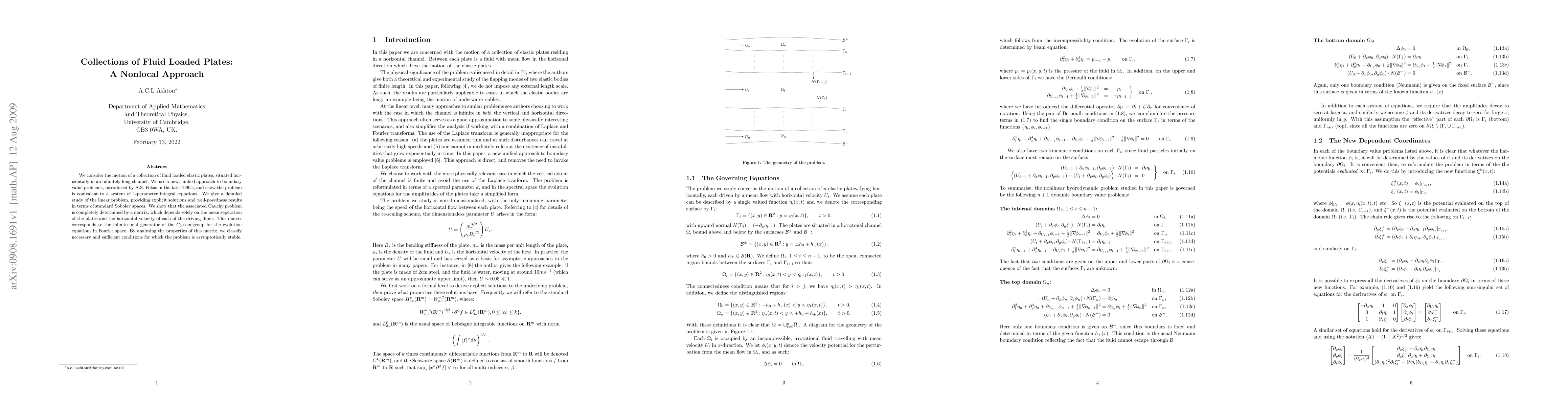 This paper explores the motion of fluid-loaded elastic plates using a nonlocal approach, demonstrating the problem's equivalence to a system of integral equations. It provides explicit solutions for the linear problem and classifies conditions for asymptotic stability based on a matrix dependent on plate separation and fluid velocities.