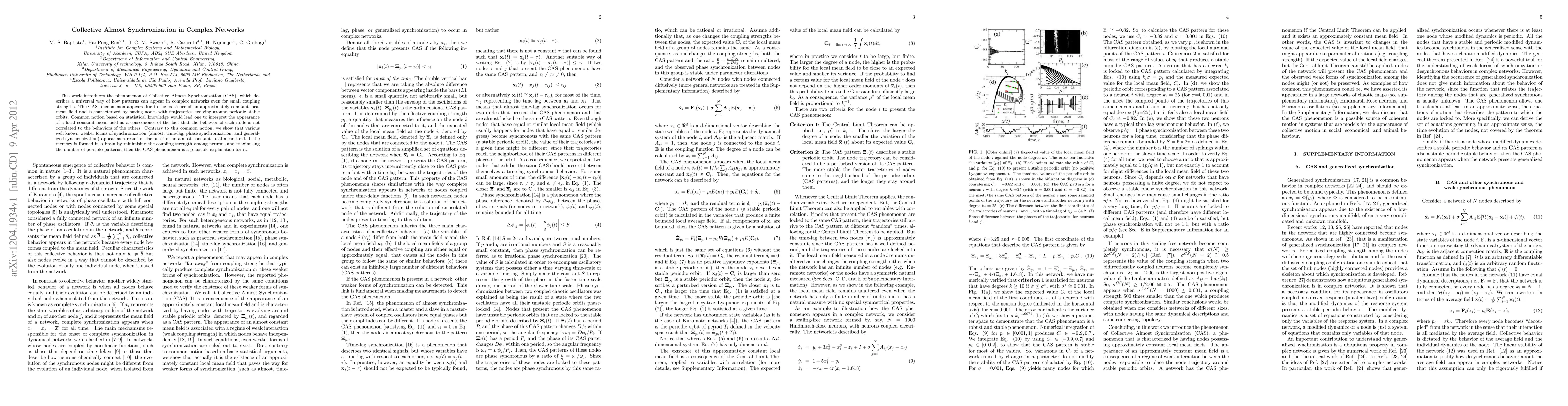 Researchers introduce Collective Almost Synchronization (CAS), a phenomenon where patterns appear in complex networks with small coupling strengths, driven by an almost constant local mean field. CAS is characterized by nodes evolving around periodic stable orbits, contradicting the assumption that individual node behavior is uncorrelated with others.