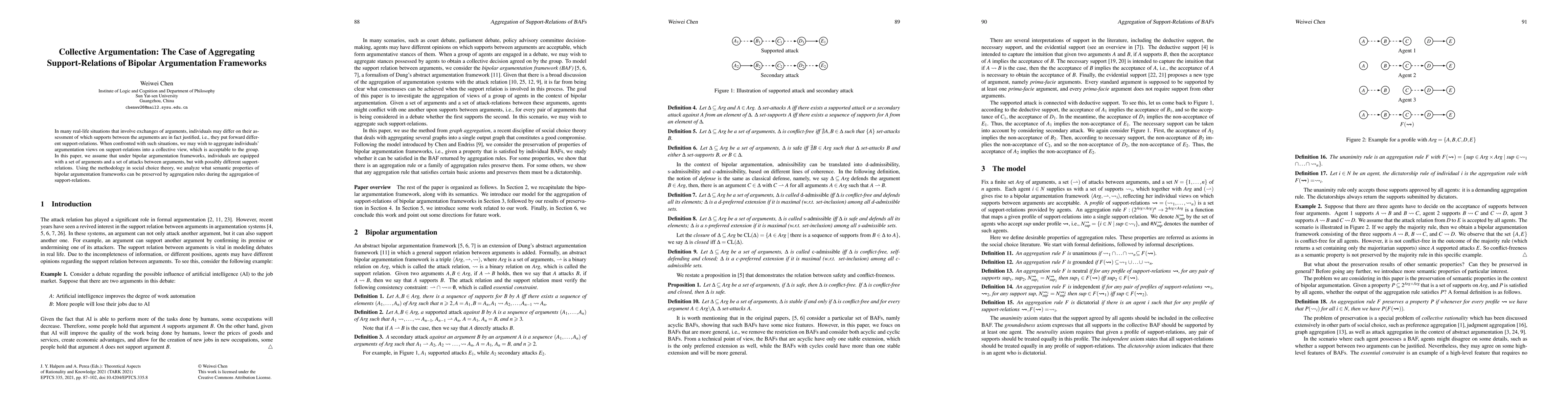This paper explores how to aggregate differing individual support-relations in bipolar argumentation frameworks into a collective view acceptable to a group, using social choice theory to analyze the preservation of semantic properties during this aggregation process.