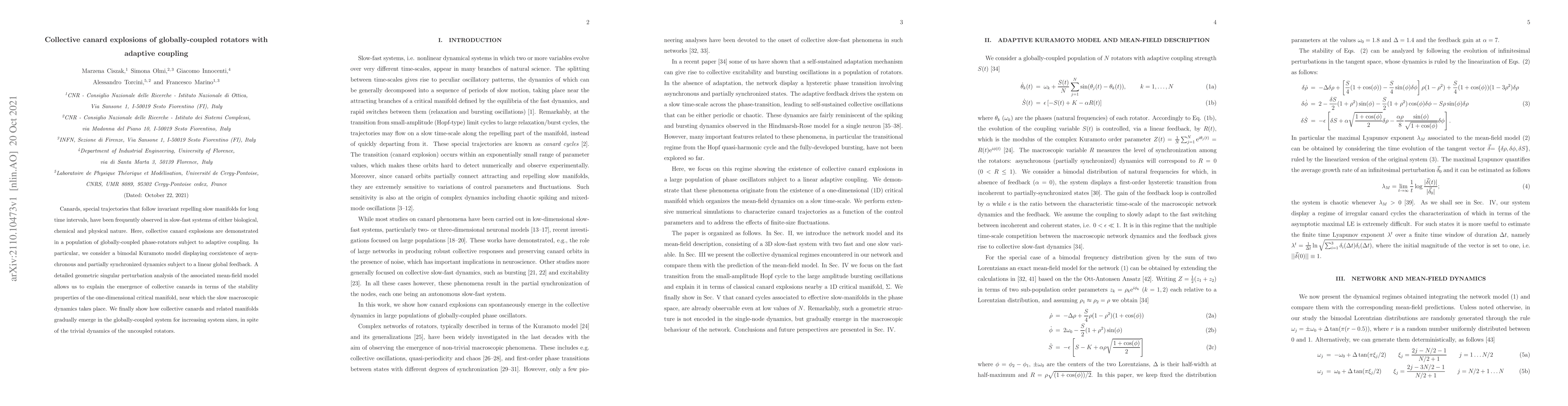 Researchers discovered collective canard explosions in a population of globally-coupled phase-rotators with adaptive coupling, where the emergence of complex dynamics arises from stability properties near a critical manifold.