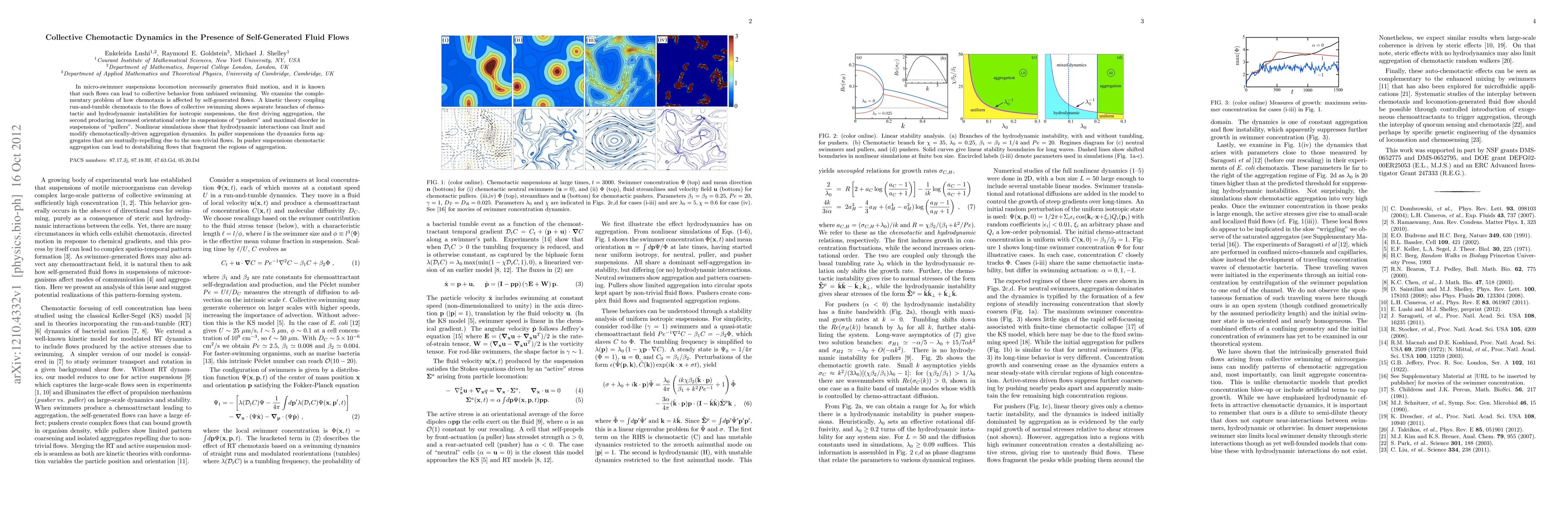 This paper explores how self-generated fluid flows from micro-swimmer suspensions influence chemotactic dynamics, revealing distinct branches of chemotactic and hydrodynamic instabilities that lead to different collective behaviors depending on whether the swimmers are "pushers" or "pullers." Nonlinear simulations demonstrate that hydrodynamic interactions can modify chemotactic aggregation, resulting in unique aggregate formations.