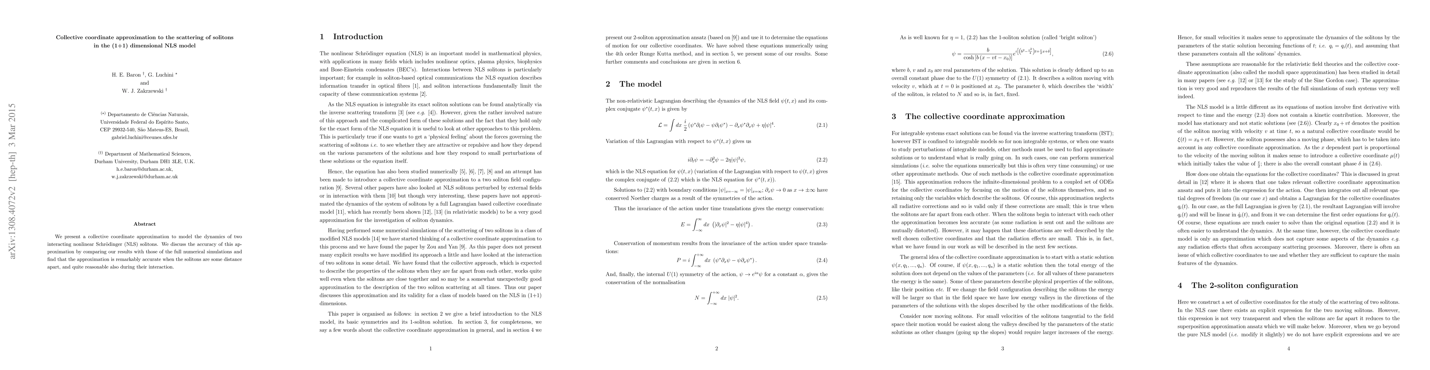 This paper introduces a collective coordinate approximation to study the dynamics of two interacting solitons in the (1+1) dimensional NLS model, demonstrating its accuracy through comparison with full numerical simulations, both during and after their interaction.