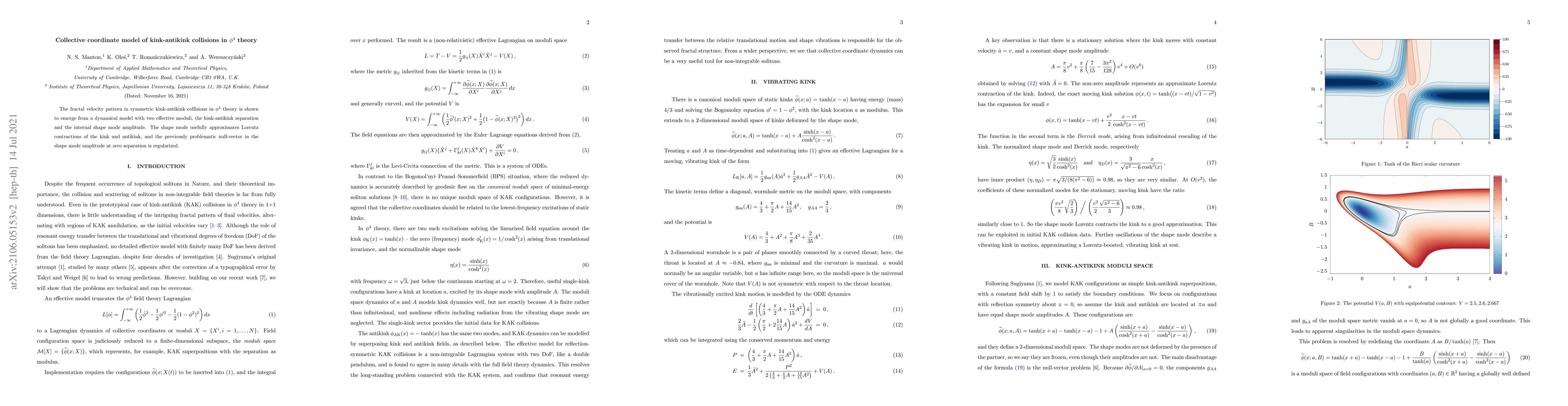 This paper presents a collective coordinate model for kink-antikink collisions in $\phi^4$ theory, demonstrating that fractal velocity patterns arise from a dynamical model with two effective moduli: the kink-antikink separation and the internal shape mode amplitude, which regularizes previously problematic null-vector issues.