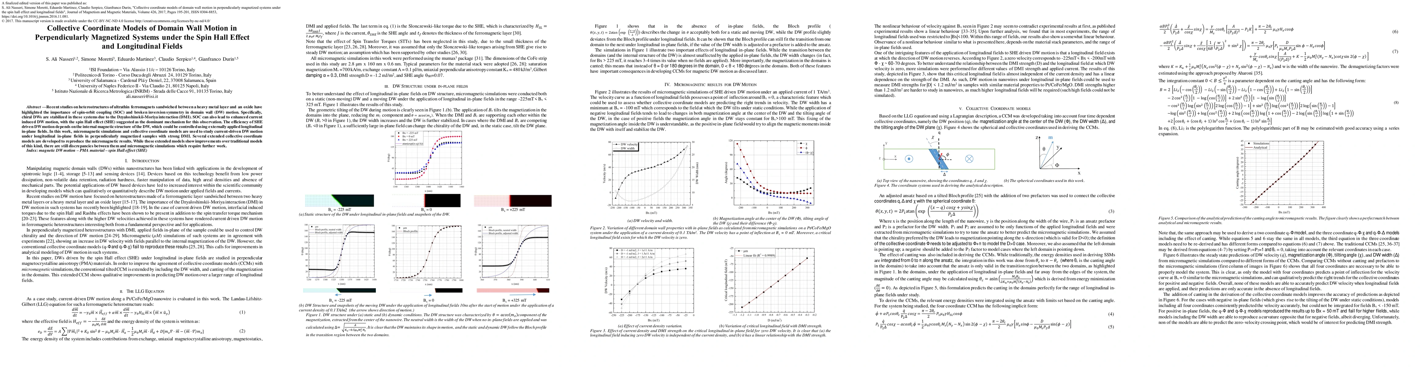 This paper investigates the motion of chiral domain walls in heterostructures under the influence of spin-orbit coupling, the spin Hall effect, and longitudinal fields, using micromagnetic simulations and collective coordinate models. While extended models show promise, discrepancies with micromagnetic results indicate the need for further refinement.