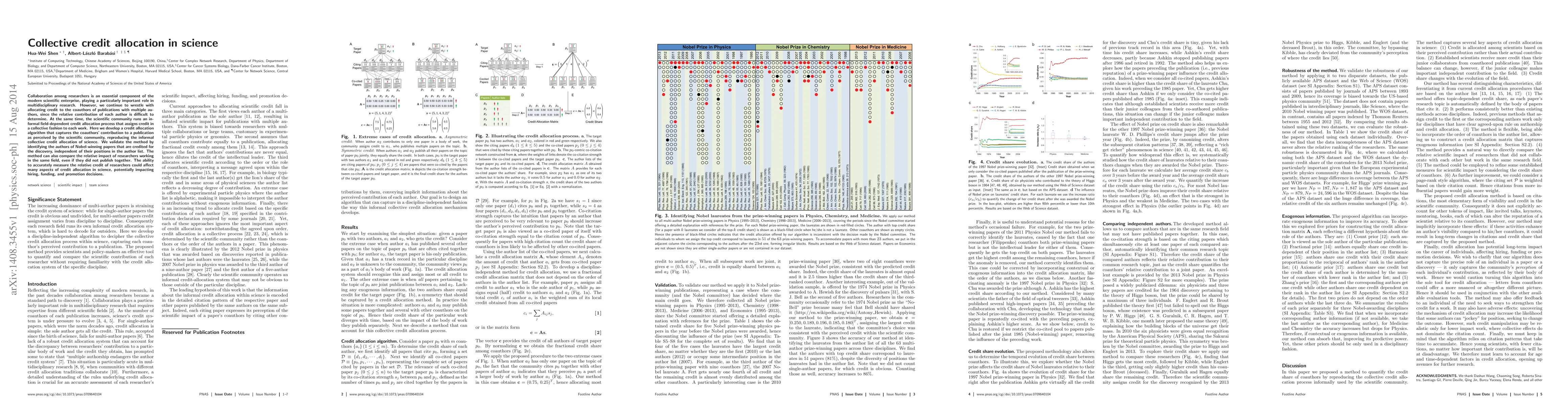 This research introduces a credit allocation algorithm for scientific publications, mirroring the informal collective credit practices in science. The method accurately assigns credit to Nobel-winning papers' authors, regardless of their position, and can compare researchers' impact across fields. This could influence hiring, funding, and promotion decisions.
